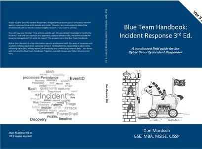 About the Book: The Blue Team Handbook is a zero fluff reference guide for cyber security incident responders – those who staff the Blue Team. The BTHb includes essential information for any incident responder, such as key information for the incident response process, how attackers work and common tools, a methodology for network analysis, Windows and Linux analysis processes, tcpdump usage examples, and numerous other topics. The book is peppered with practical real life techniques from the authors 12 year career working in academia and a corporate setting. Whether you are writing up your cases notes, analyzing potentially suspicious traffic, or called in to look over a misbehaving server – this book should help you handle the case and teach you some new techniques along the way.